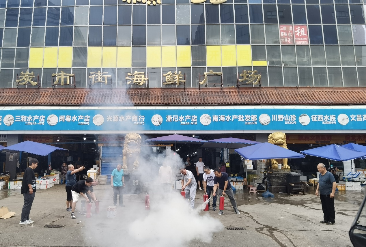 炎熱的夏季,是火災事故的高發(fā)期,為確保公司安全生產(chǎn)工作平穩(wěn)有序,避免火災事故的發(fā)生,按照公司年度安全消防培訓計劃安排,7月23日下午,在水產(chǎn)市場大門外,公司組織了夏季消防應急演練活動。演練活動由公司副總經(jīng)理葉雷主持,公司員工及商戶代表共30余人參加了應急演練。