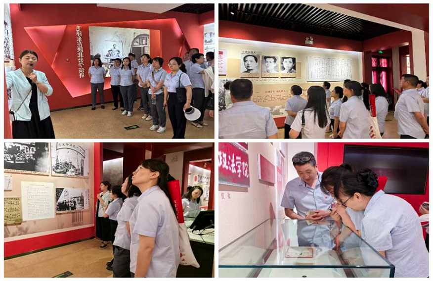 在講解員的引導下,大家依次走進各個展廳,認真聆聽著那段波瀾壯闊的歷史。展廳內(nèi)珍貴的歷史照片、詳實的文字資料和保存完好的實物展品,如“木板當課桌”,彰顯先輩奮斗精神,生動地再現(xiàn)了當年學校的教學場景和師生們的學習生活。大家不時駐足停留,仔細觀看每一件展品,深入了解每一個歷史細節(jié),仿佛穿越時空,感受到了先輩們?yōu)榱死硐牒托拍疃恍笂^斗的精神力量。這一過程,恰似一次深入的調(diào)查研究,讓黨員干部們從歷史中汲取智慧和力量,以更加務實的態(tài)度和作風投入到實際工作中。